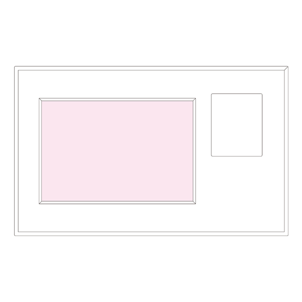 - ■可能サイズ: (液晶下部)パッド印刷/縦20×横50mm・インクジェット印刷/縦50×横55mm(フレーム下部)シルク印刷/縦12×横150mm(インナーシート差し替え)インクジェット印刷/縦89×横127mm