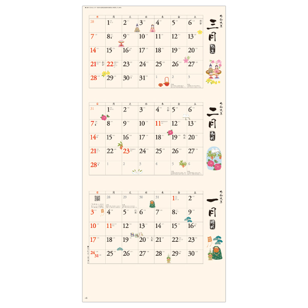 このカレンダーも2尺×1尺の身度尺で企画された「住空間になじんで心地いい」と人気のサイズです。