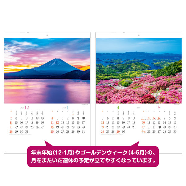 品番:102614 壁掛けカレンダー 12月始まり 彩り日本