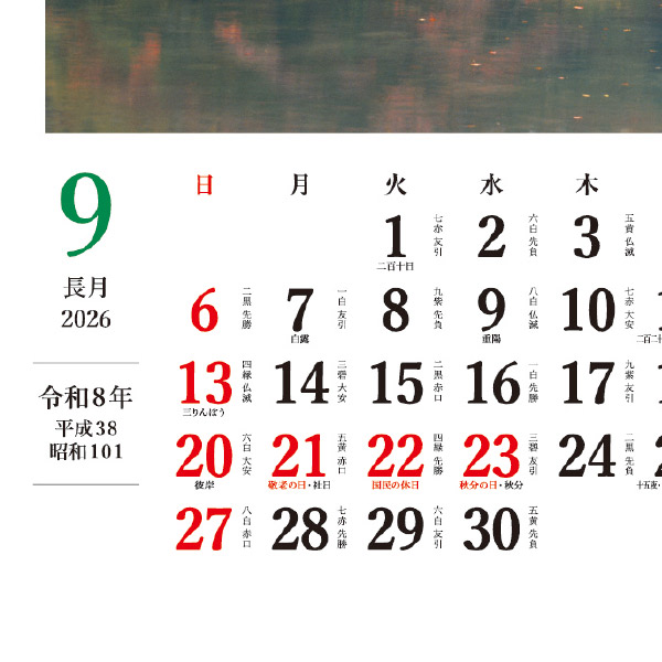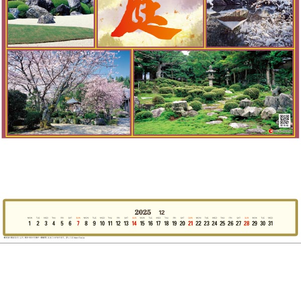品番:102615 壁掛けカレンダー 日本の庭(メモ欄付)