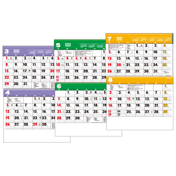 品番:102624 壁掛けカレンダー カラー2か月メモ・ジャンボ(15ヶ月)