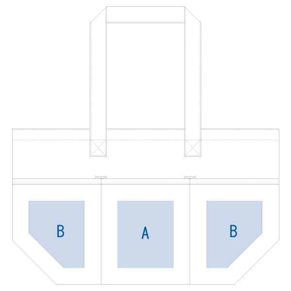 - ■可能サイズ: シルク印刷/縦120×横100mm、熱転写印刷/(中央ポケット)縦120×横100mmまたは(左右どちらかのポケット)縦100×横100mm