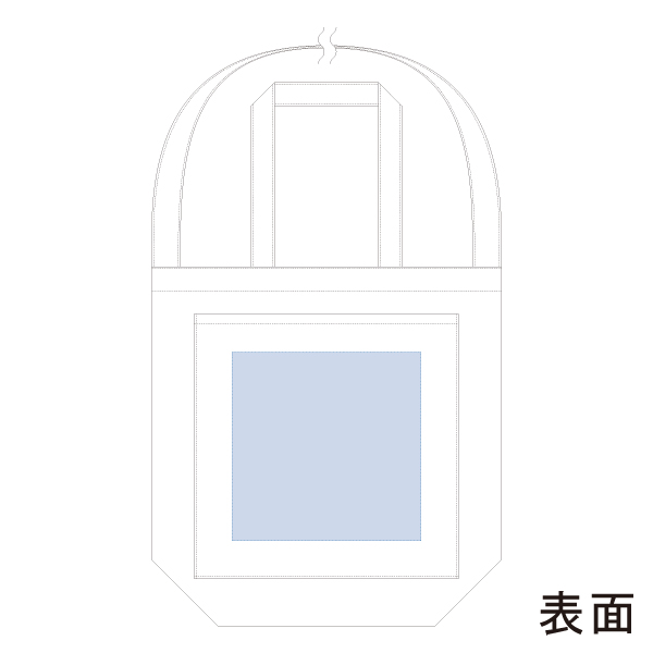 - ■可能サイズ: 表面ポケット中央/縦200×横200mm、裏面中央(シルク印刷・インクジェット印刷)/縦220×横250mm、裏面中央(熱転写印刷)/縦200×横210mm