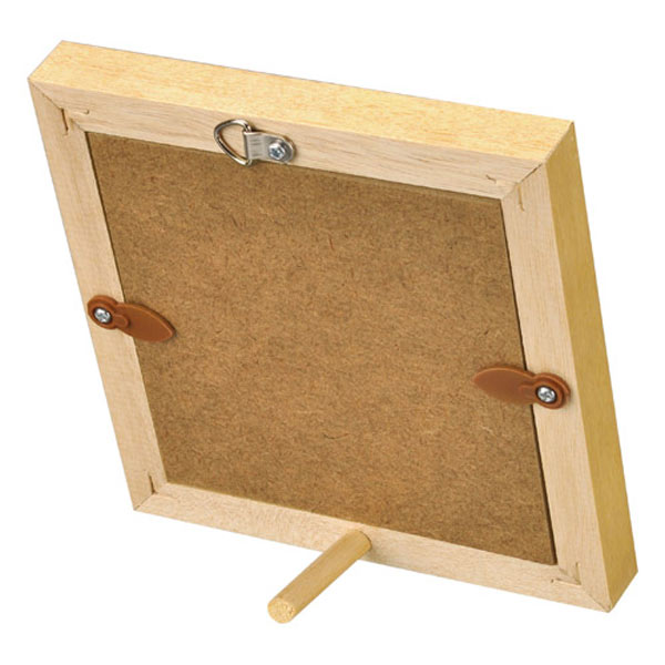 背面下の穴に丸棒を差し込んでスタンドにできます。