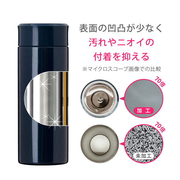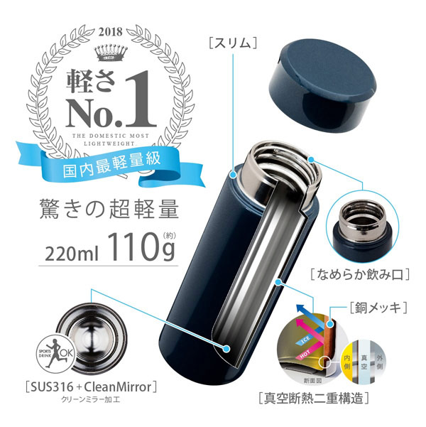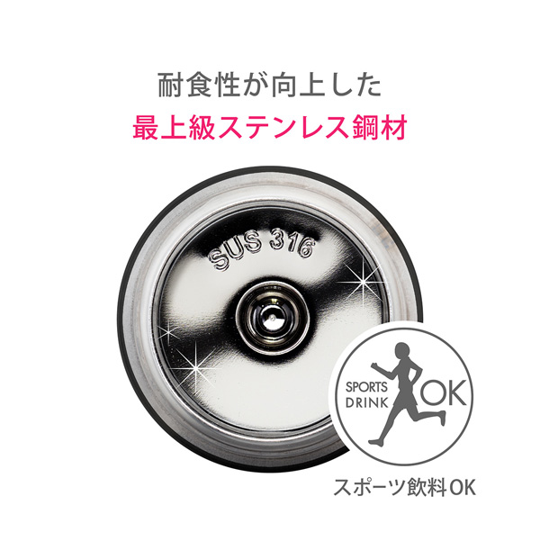 | 材質: | 内びん/ステンレス鋼、胴部/ステンレス鋼、ふたキャップ/ポリプロピレン、パッキン/シリコーン |