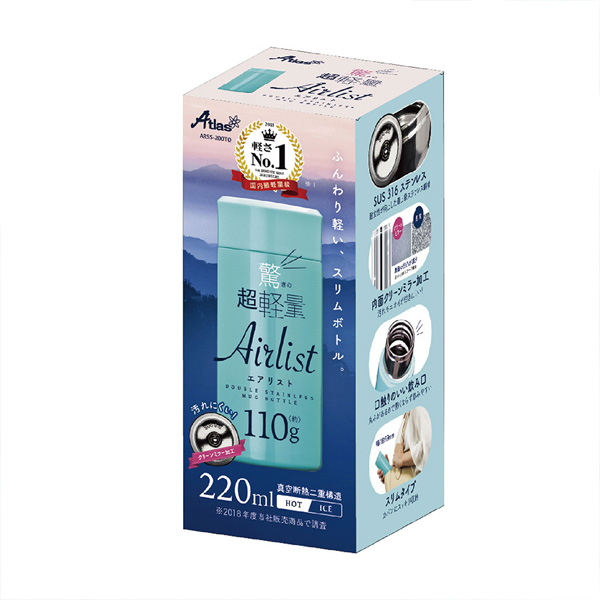 品番:106077 アトラス Airlist 超軽量スリムボトル 220ml