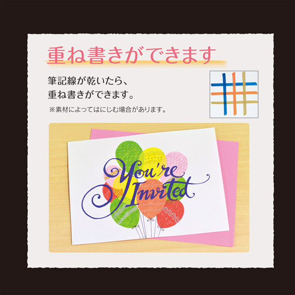 ◆筆記線が乾いたら重ね描きが可能です。(※素材によってはにじむ場合もあります。)