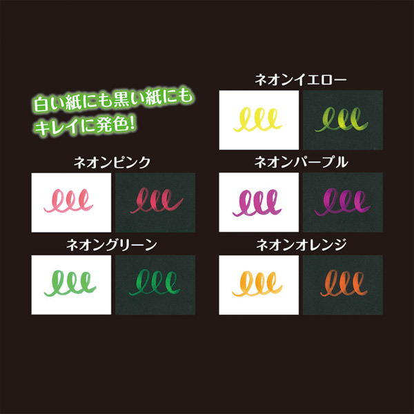ネオンイエロー、ネオンピンク、ネオンパープル、ネオングリーン、ネオンオレンジ