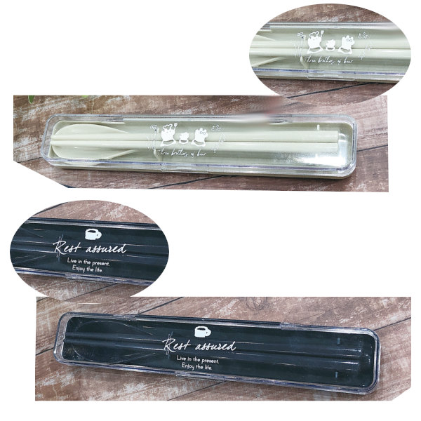 ケースと同色のお箸とスプーンがセットされています。