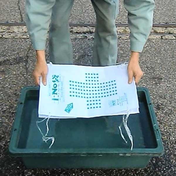 従来使用されている土のう袋に比べ、軽量で持ち運びやすく、土砂がいらないので、環境にやさしく、使いやすさ抜群です。