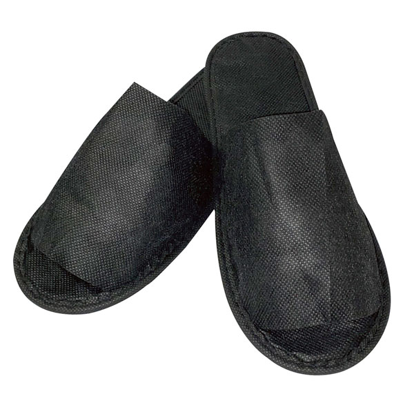 品番:107771 リサイクル不織布高品質スリッパ前綴じ 黒 紙帯巻き