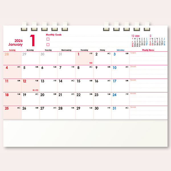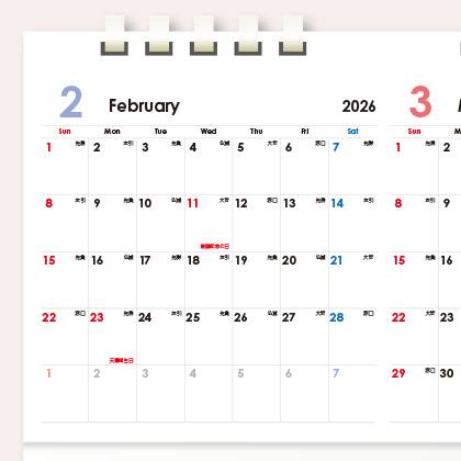 表面はスケジュール管理ができ、裏面は先行2ヶ月掲載です。