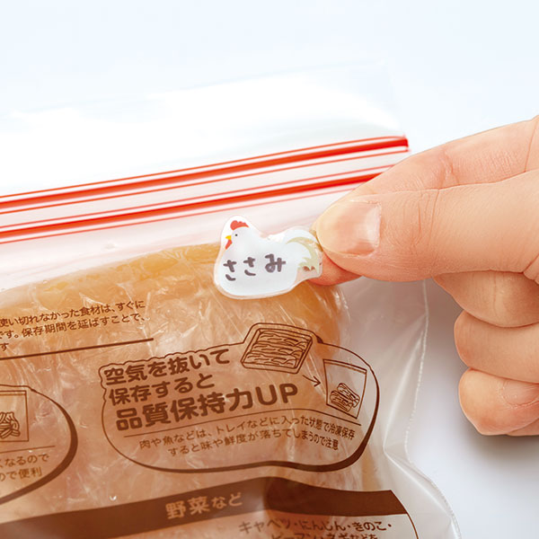 冷凍保存・解凍のための豆知識が記され、 さらに付属の「肉の分別シール」を貼れば、一目で食材が判別できます。