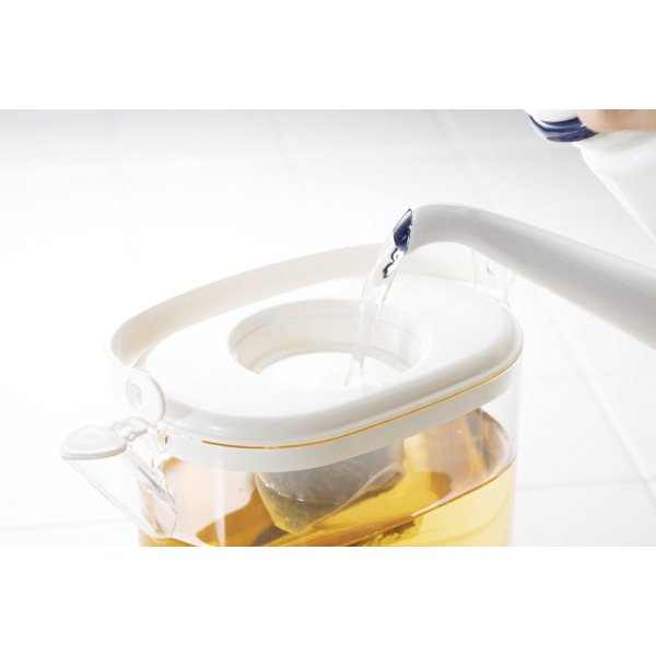 取っ手を起こすと自動的に注水口のフタが開き、楽にお茶を注げます!