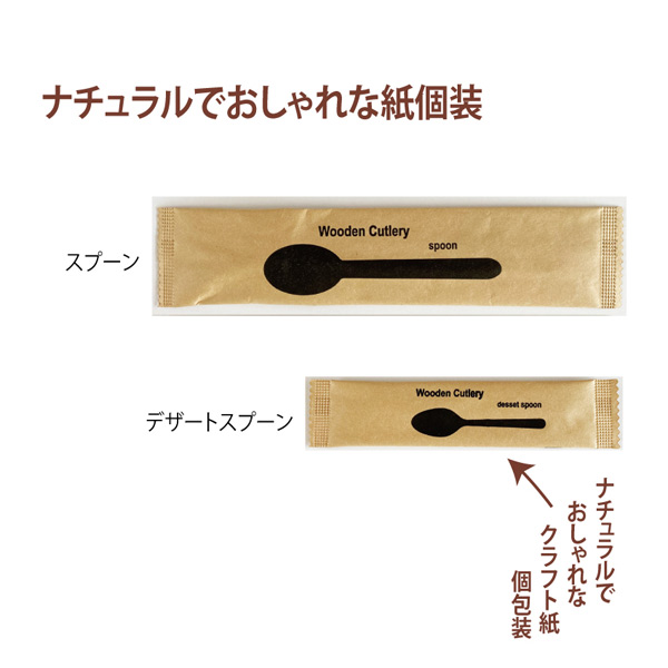 紙完封使い捨て木製スプーン・デザートスプーン 各1本