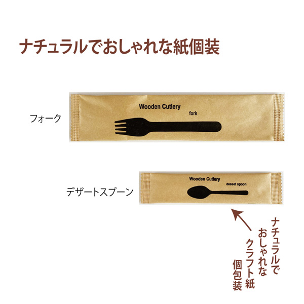 紙完封使い捨て木製フォーク・デザートスプーン 各1本