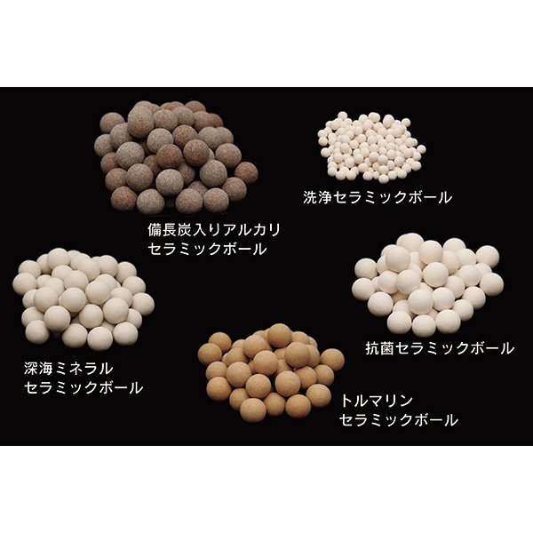 洗濯の時に入れるだけで、5種の特殊セラミックが水質を弱アルカリに傾け、特殊形状のボールの回転が衣類同士の絡みを防いで汚れ落としをお手伝い!
