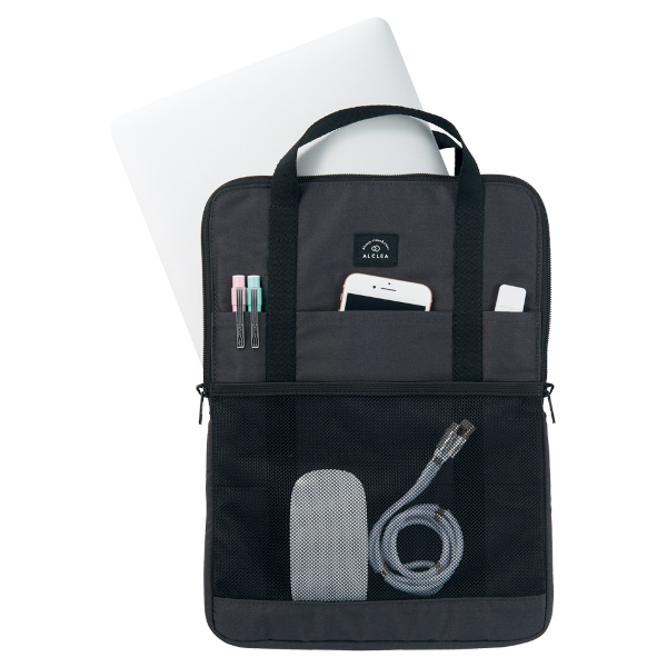 タブレットPCにやさしいクッション入り、コの字型に開くダブルファスナーで出し入れも簡単!