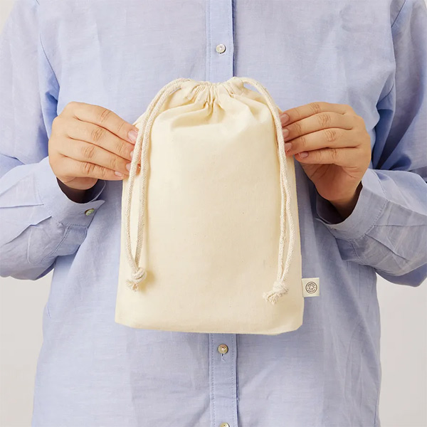 品番:110050 オーガニックコットンガゼット巾着(M) ナチュラル