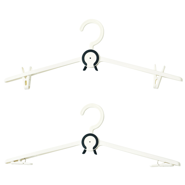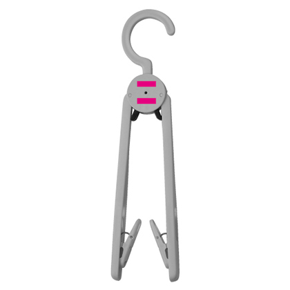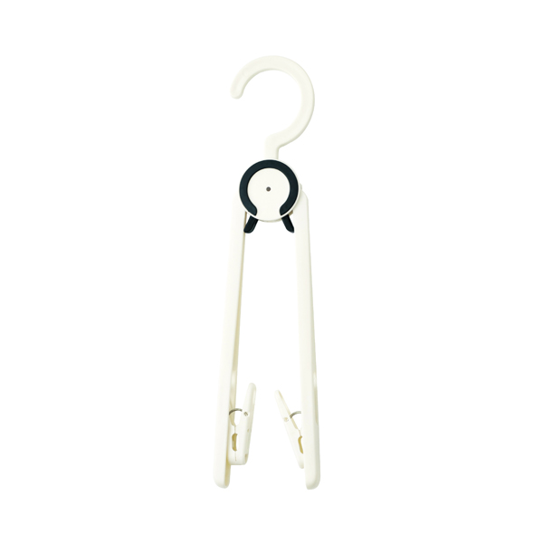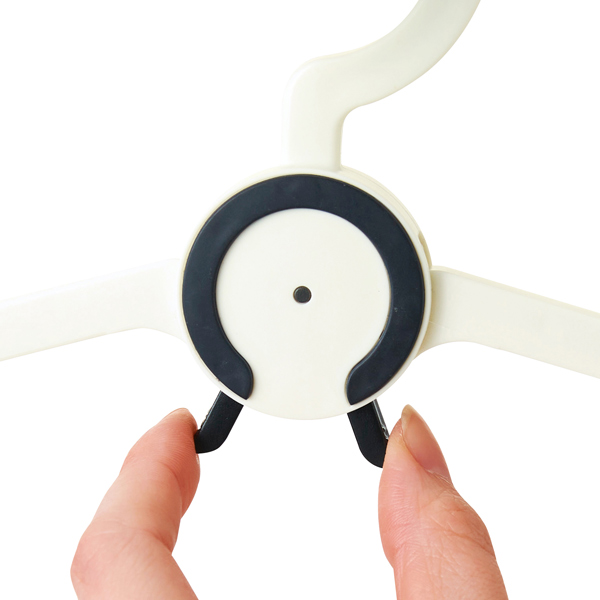 フック付け根の突起部分をつまむとアームが閉じるので、首元を伸ばさずに衣服の取り入れが可能。