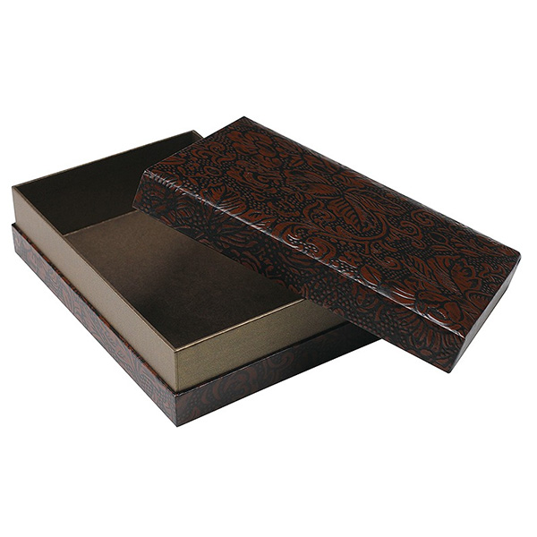 うるし紙は、型押しを施した紙に漆器と同じ工程でかぶれる心配のないカシュー塗料を職人が何度も塗り重ねて作られています。
