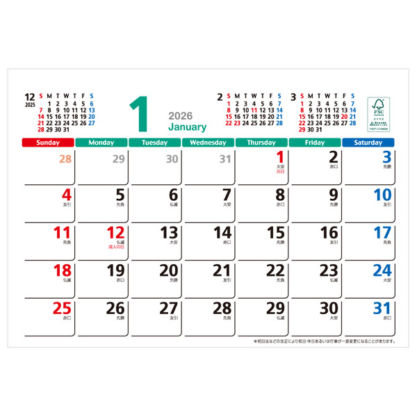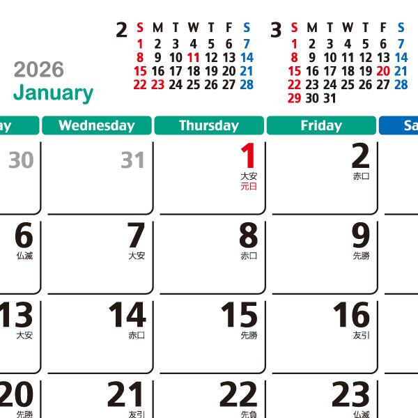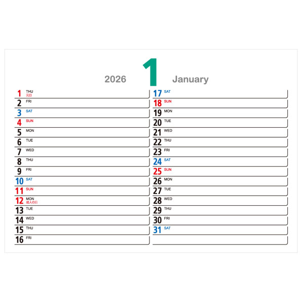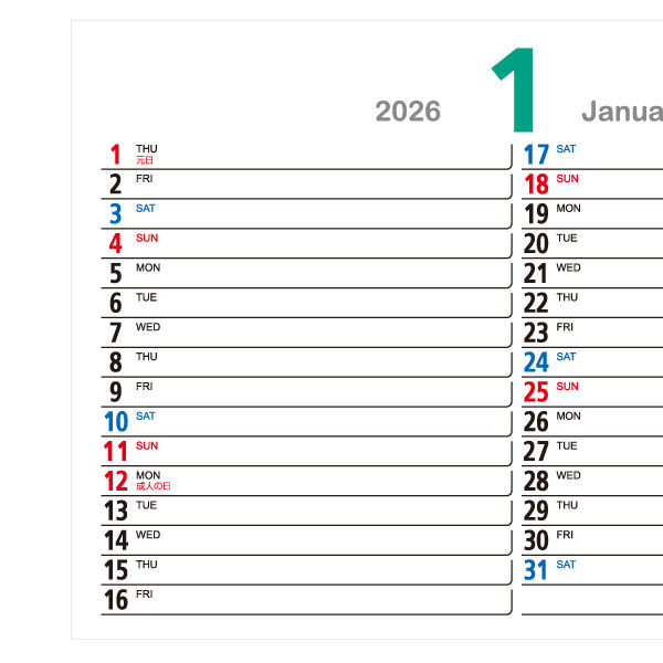 シンプルなデザインでメモ書きもしやすく、裏面にはスケジュール管理に便利な広いメモスペースがあります。