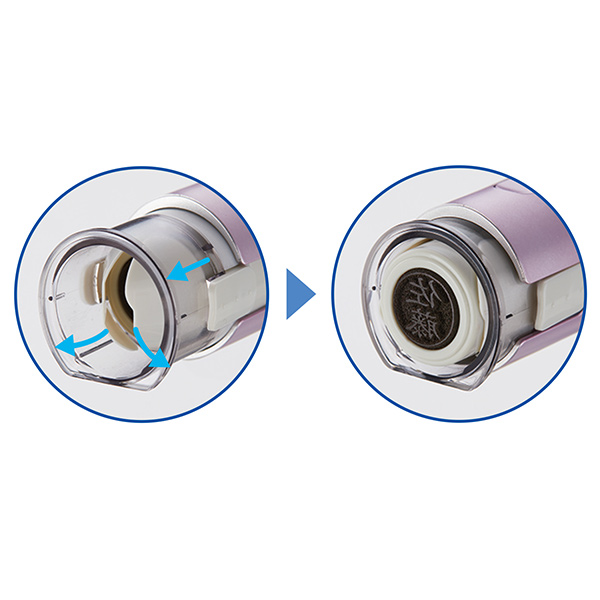 普段閉じている印面先端のシャッターが、捺印動作の際に自然に開閉します。