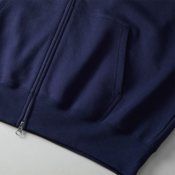 カンガルーポケット仕様。裾下の身頃とリブのシームラインは、堅牢なまたぎ2本針仕上げ(※仕様例につき商品カラー・サイズは異なる場合がございます)