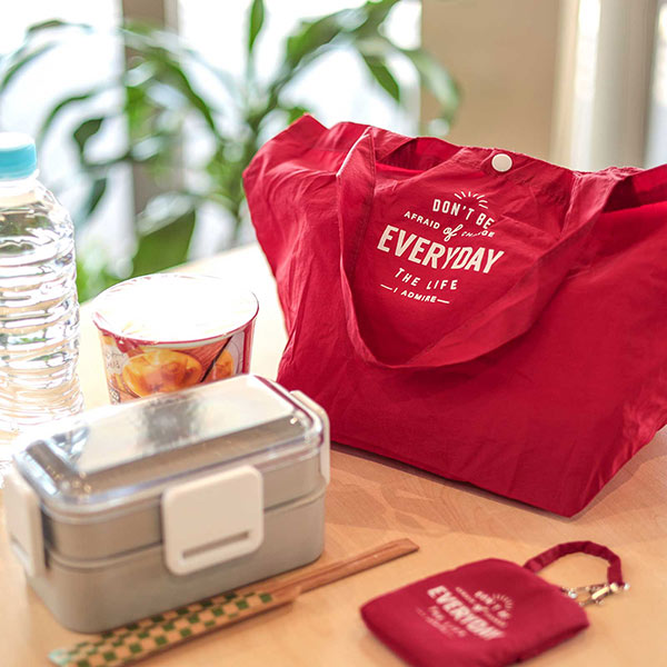 撥水加工&シワ加工が施されており、お箸やお手拭きを入れられる内ポケットや、カバンに取り付けられるストラップ付で、利便性に長けています。