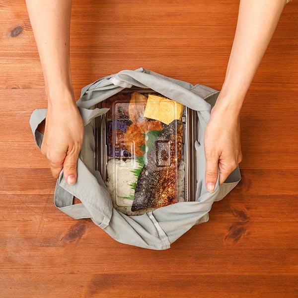 マチが広いのでお弁当が傾かずに入る!撥水加工で雨の日も気にせず使えます