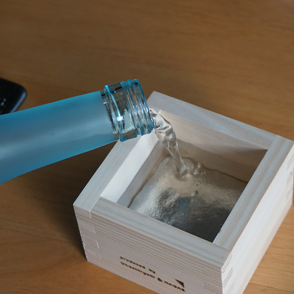 使い方は簡単で、錫を枡の中にセットしたあと日本酒を注ぎます。