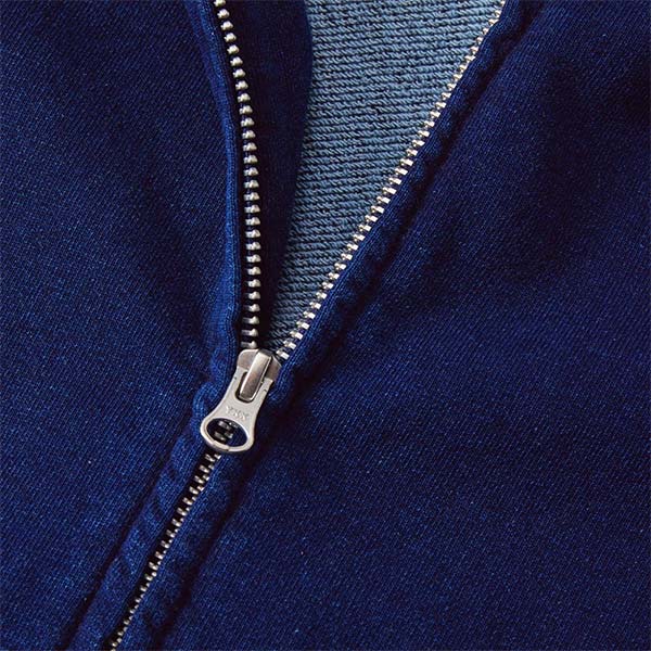 インディゴ染め特有の表情を存分に楽しめる最旬フルジップパーカです。