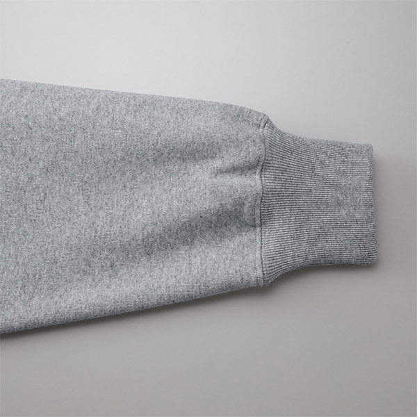 オープンエンド糸の持つ独特の風合いにより、味のある「ムラ感」と「ザラ感」を楽しむことができる、スウェット好きも納得の一枚です。
