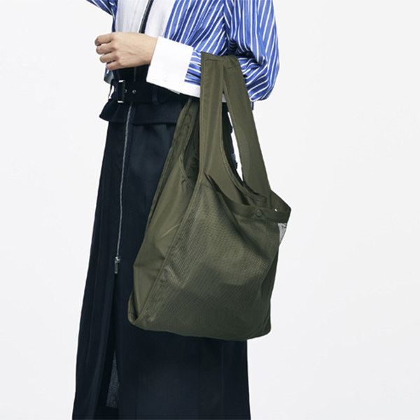 内ポケットに加えて、バッグの外側にメッシュポケットを備え収納力抜群のエコ素材バッグが仲間入り。