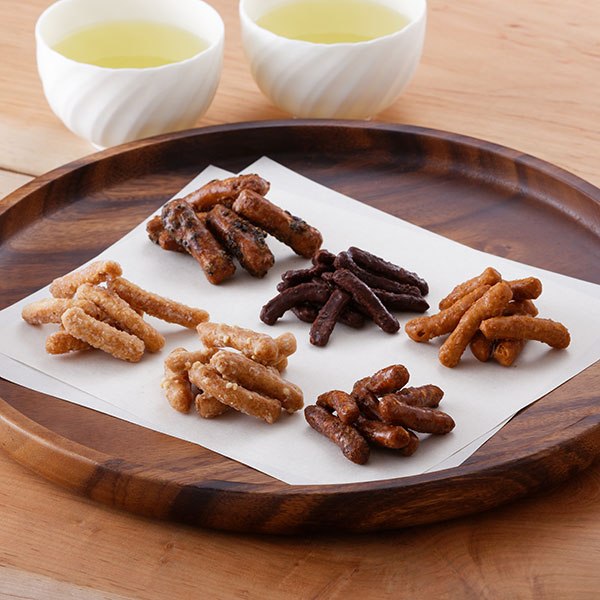 6種類のフレーバーを楽しめるかりんとう詰合わせです。