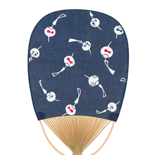 品番:114715 竹うちわ 小判型 紺地 風鈴