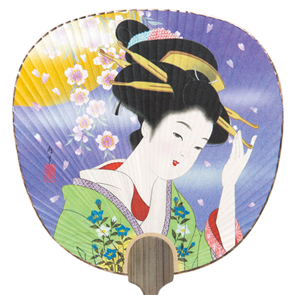 品番:114779 美人画 都うちわ 寿美美人(夜桜)