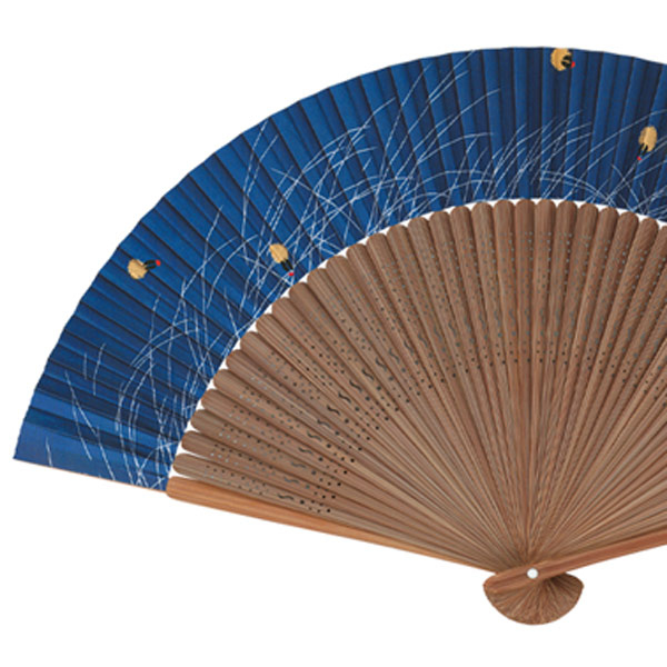 品番:114810 紳士用高級絵付扇子 唐木中彫 大短地 紺パール地 ホタル