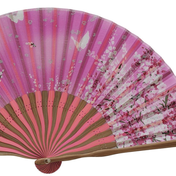 品番:115123 婦人用シルク扇子 シンビジウムと蝶 若紫