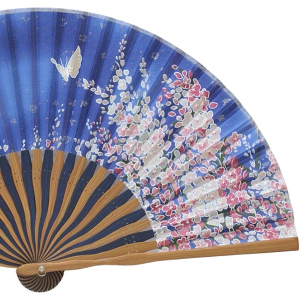 品番:115133 婦人用シルク扇子 シンビジウムと蝶 青