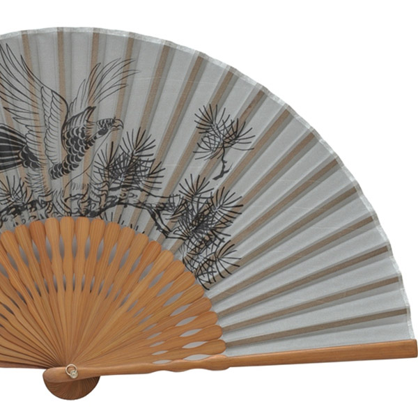 品番:115158 紳士用シルク扇子 鷹に松(羽白)