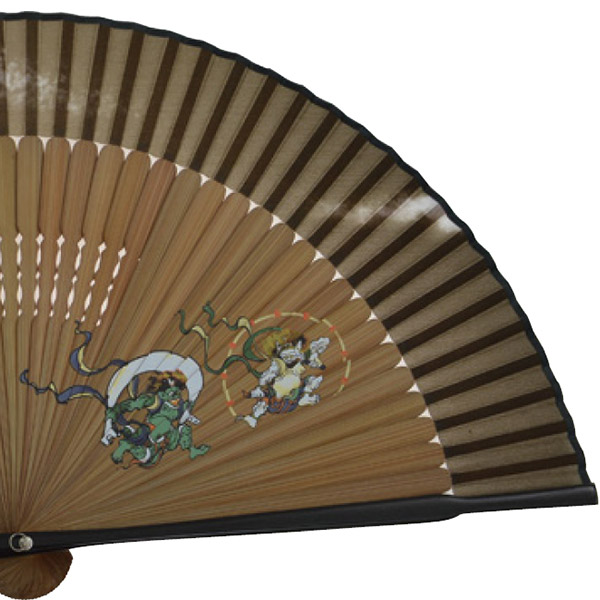 品番:115231 シルク扇子 風神雷神 茶黒 短地+ペインテックス