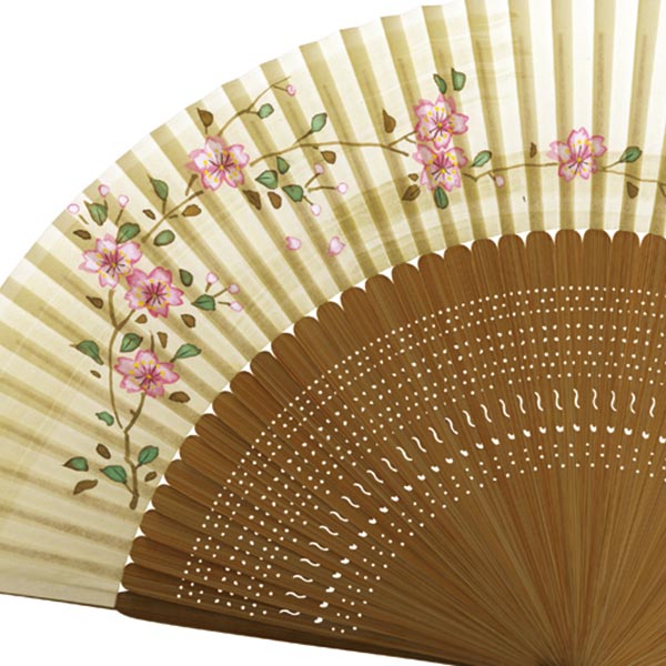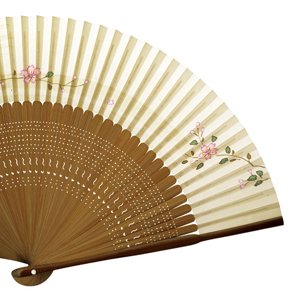 国内の産地から選りすぐった竹を扇骨とし、京都東山の扇子用和紙に京都の絵師が真心を込めて優美な桜を描き込みました。