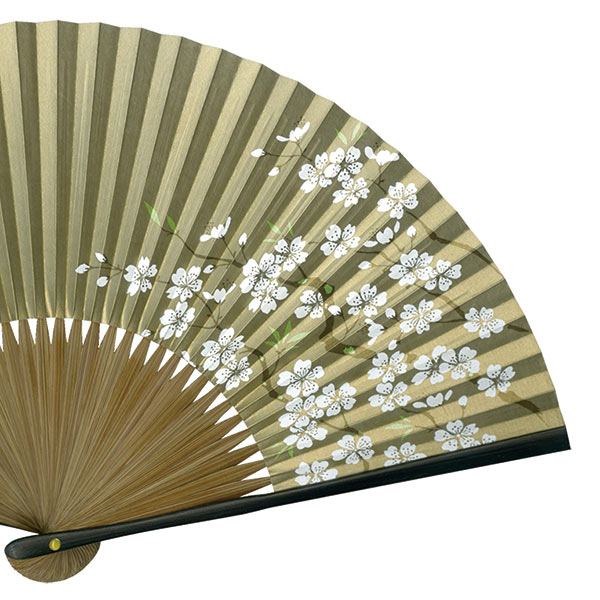 品番:115470 婦人用紙扇子 笹型 金地桜