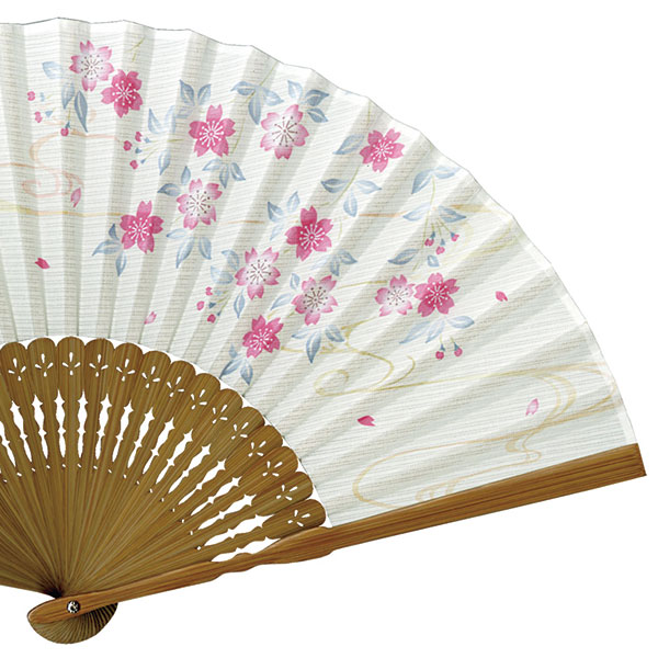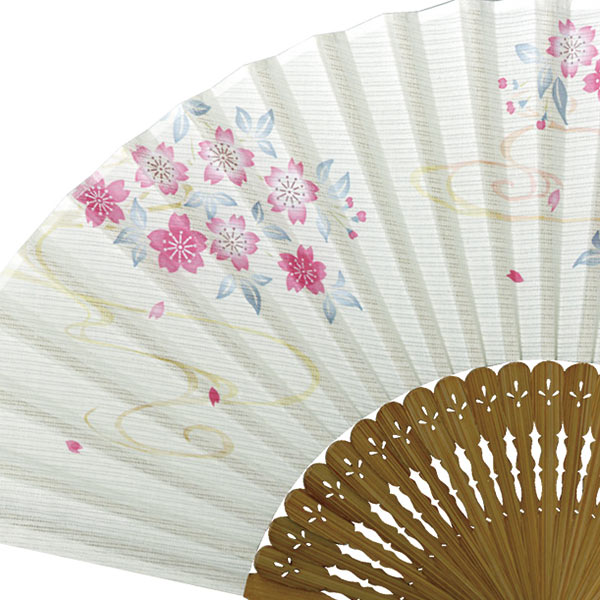 品番:115511 婦人用布扇子 あわいろ和花 桜