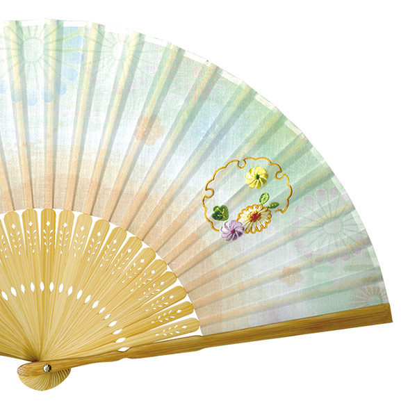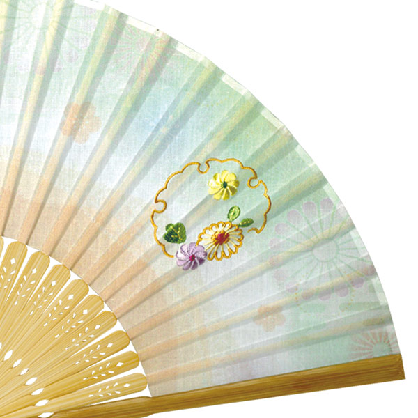 品番:115526 婦人用布扇子 ふんわり刺繍 和花