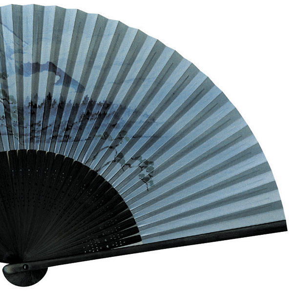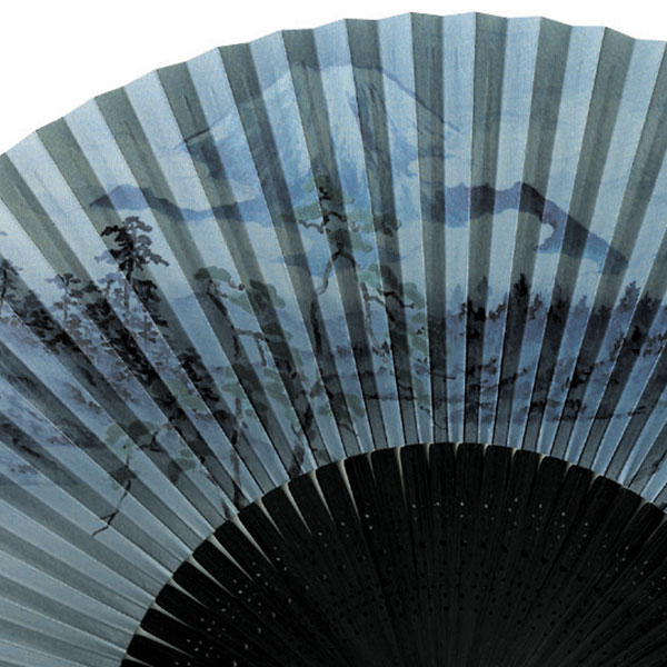 品番:115571 紳士用 絹張風紙扇子 富士山(黒)