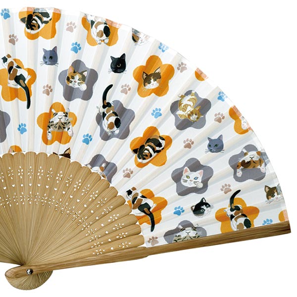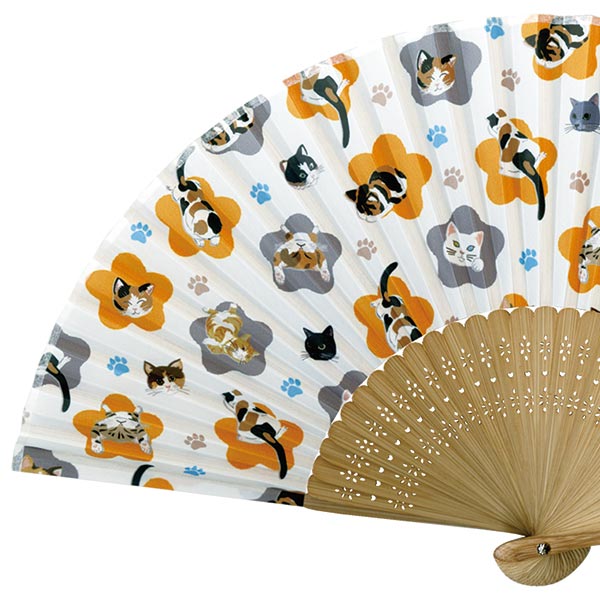 品番:115703 婦人用布扇子 にゃんたま ごろごろ