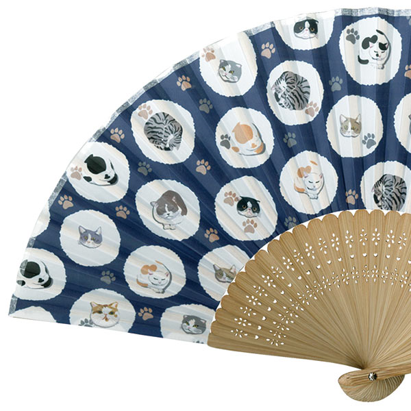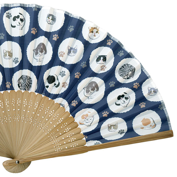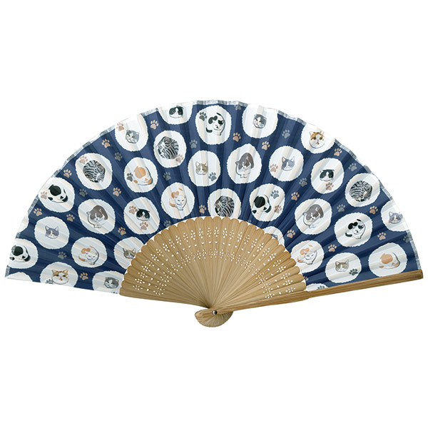 品番:115705 婦人用布扇子 にゃんたま まんまる
