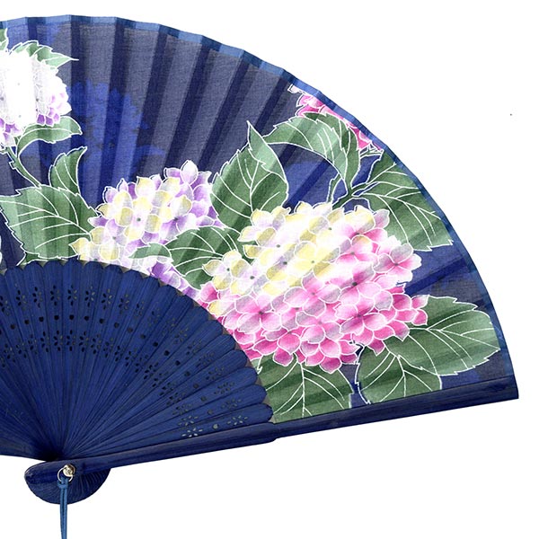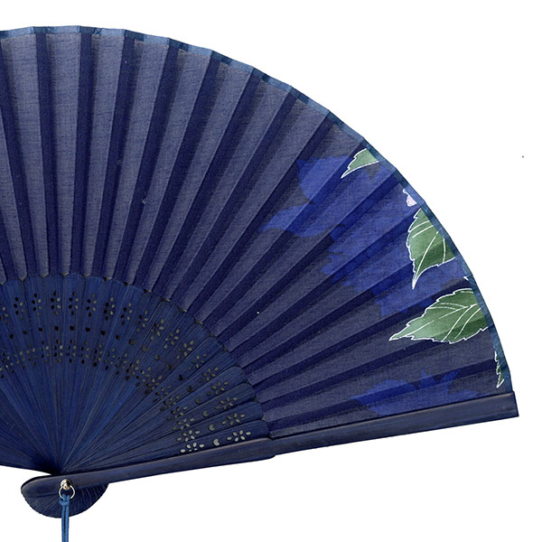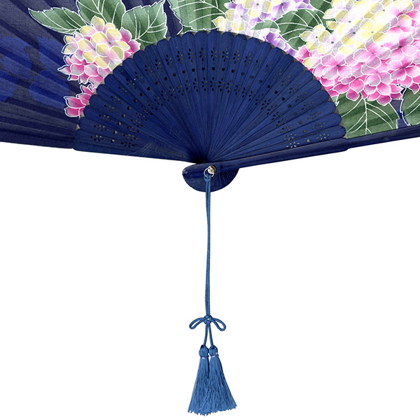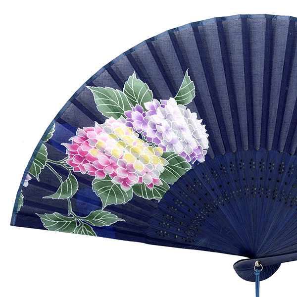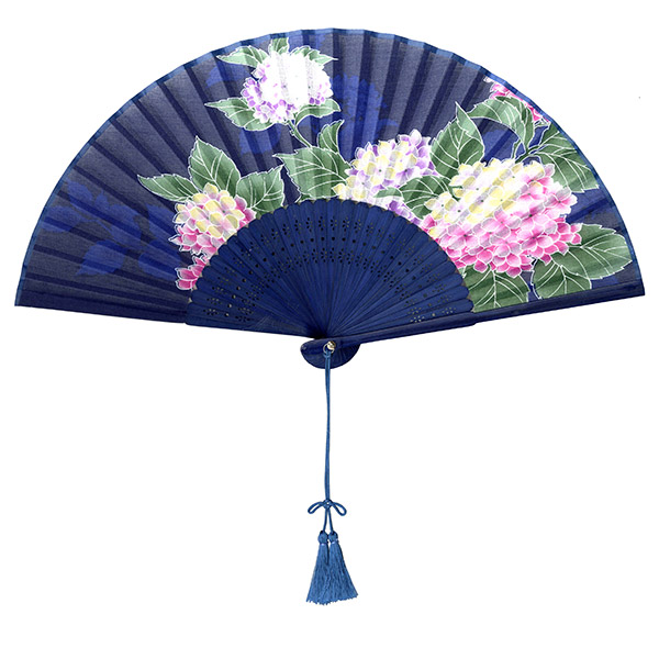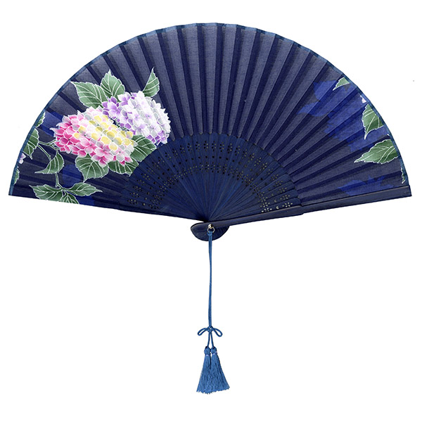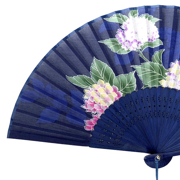 品番:115736 婦人用布扇子 藍染 紫陽花